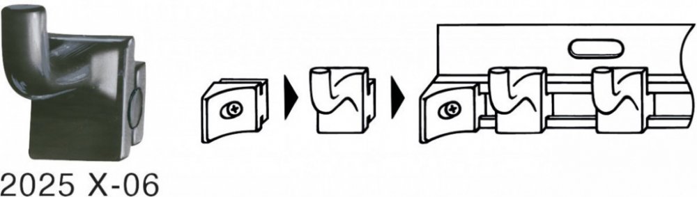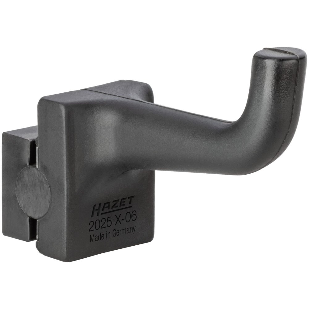 Jednoduchý hák na nářadí do vodící lišty. Vodící lišta je určená na přišroubování ke zdi.