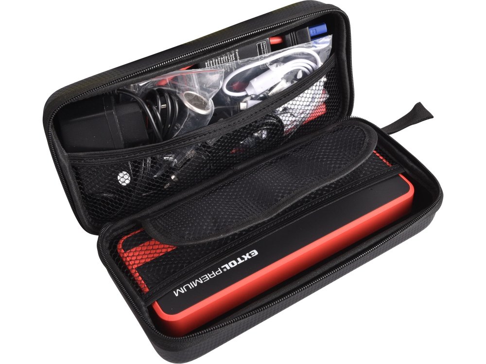 snadné a pohotové nastartování vozidel s vybitou baterií slouží také jako USB powerbanka i záložní zdroj pro notebooky (19V, 8 různých koncovek) a zdroj pro 12V zařízení (do 10A) je vybaven integrovanou ochranou proti zpětnému proudu, zkratu, přehřátí a přebití díky malému rozměru, váze a pevnému pouzdru ve kterém je uložen spolu s příslušenstvím je lehce přenosný je ideální součástí výbavy vozidel a pro cestování LED svítilna se 3módy svícení (nepřerušované, přerušované a SOS signalizace) vše je uloženo ve skořepinovém kufru, který chrání jump startér a všechno jeho příslušenství
