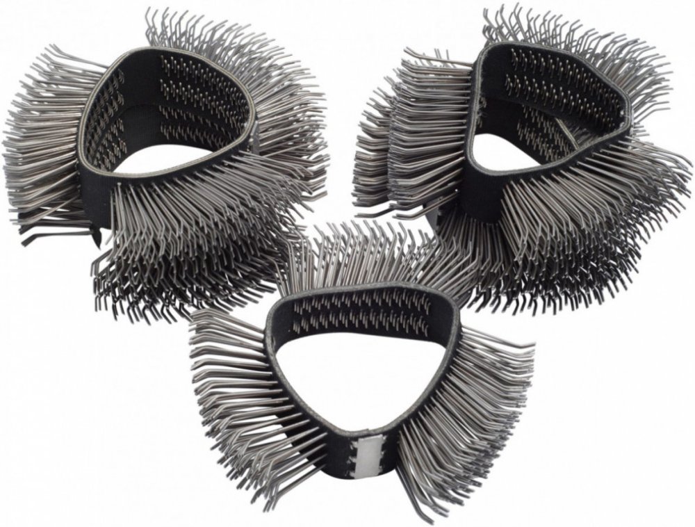 23 mm široký kartáčový pás, hrubý se zahnutými hroty. 5 ks. Pro odstranění ochrany podvozku proti korozi, těsnicích hmot a laku, s hrubým pískovacím efektem. Kartáčový pás do Pneumatické multibrusky 9033N-6.