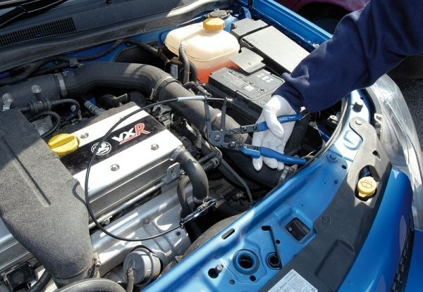 Univerzální kleště pro montáž samosvorných spon palivových, olejových a chladících systémů vozidel. Výrobek navržený pro manipulaci v těžko přístupných místech. Bowden o délce 690 mm spolu s minimální velikostí čelistí umožňuje pracovat i v prostoru nedostupným pro klasické nástroje.