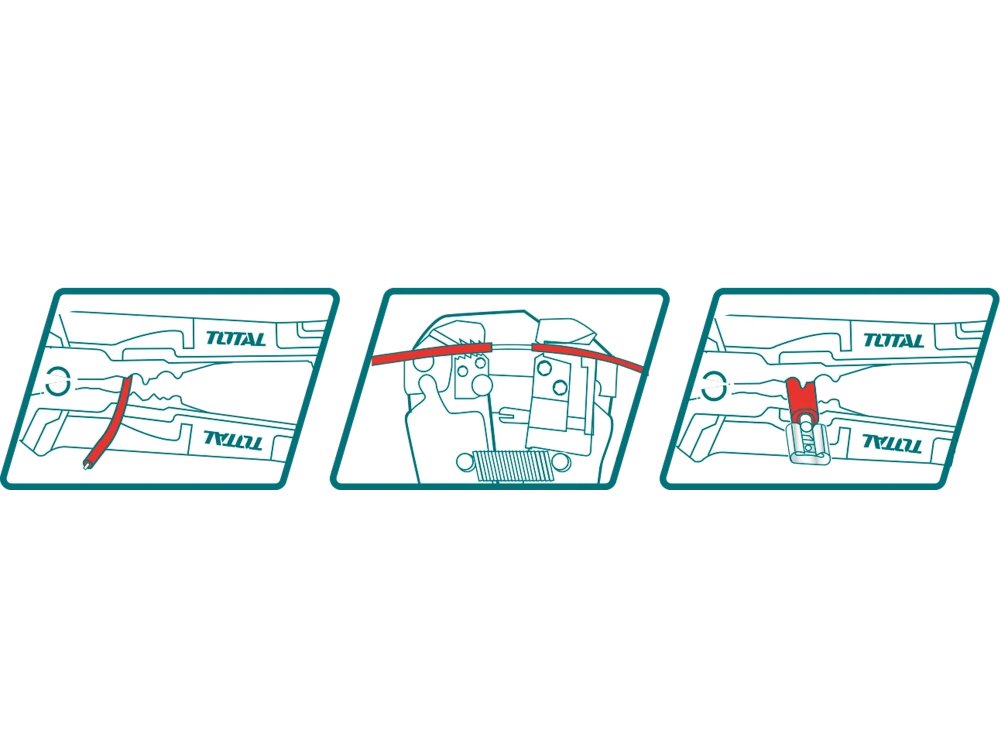 Odizolovací a krimpovací kleště, které detekují napětí. Bezkontaktní detekce napětí, odizolování, řezání a krimpování. Rozsah odizolovacích vodičů: 10AWG~24AWG (0,2~6mm²). Funkce řezání: měděné a hliníkové dráty. Krimpuje izolované koncovky 0,5-6mm² (22-10AWG). Krimpuje neizolované koncovky: 0,5-6mm²(24-10AWG), Zalisujte zapalovací svorky: 7-8 mm².