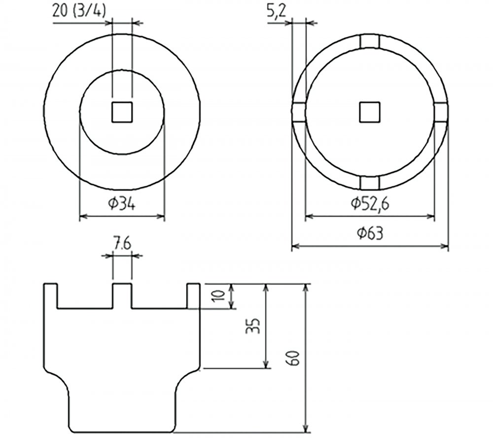 Klíč na povolení a demontáž nosného kulového čepu spodní přední a zadní osy.