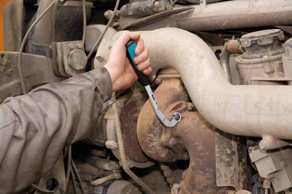 Klíč pro manipulaci s upevňovacími maticemi turbodmychadla u užitkových automobilů MAN, německý výrobce HAZET.