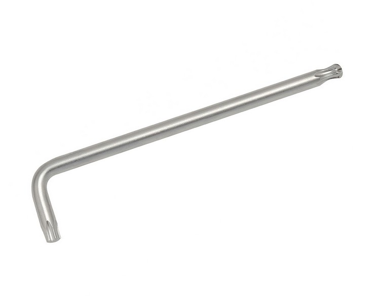 - zahnutý klíč TORX - na delší straně s kuličkou - ocel typu S2 (chrom/silicium/magnesium/molybden/vanadium) - matně chromované