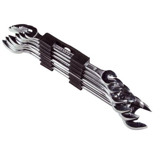 klíče otevřené oboustranné - sada 6ks vyrobeny kováním z vysoce kvalitní CrV oceli rozměry klíčů: 6x7; 8x9; 10x11; 12x13; 14x15; 16x17 mm sada je dodávána na plastovém držáku DIN 3110