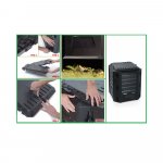 Uzavřený koncept kompostéru brání zvířatům v přístupu ke skladovaným odpadům a malé otvory zajišťují přístup vzduchu.