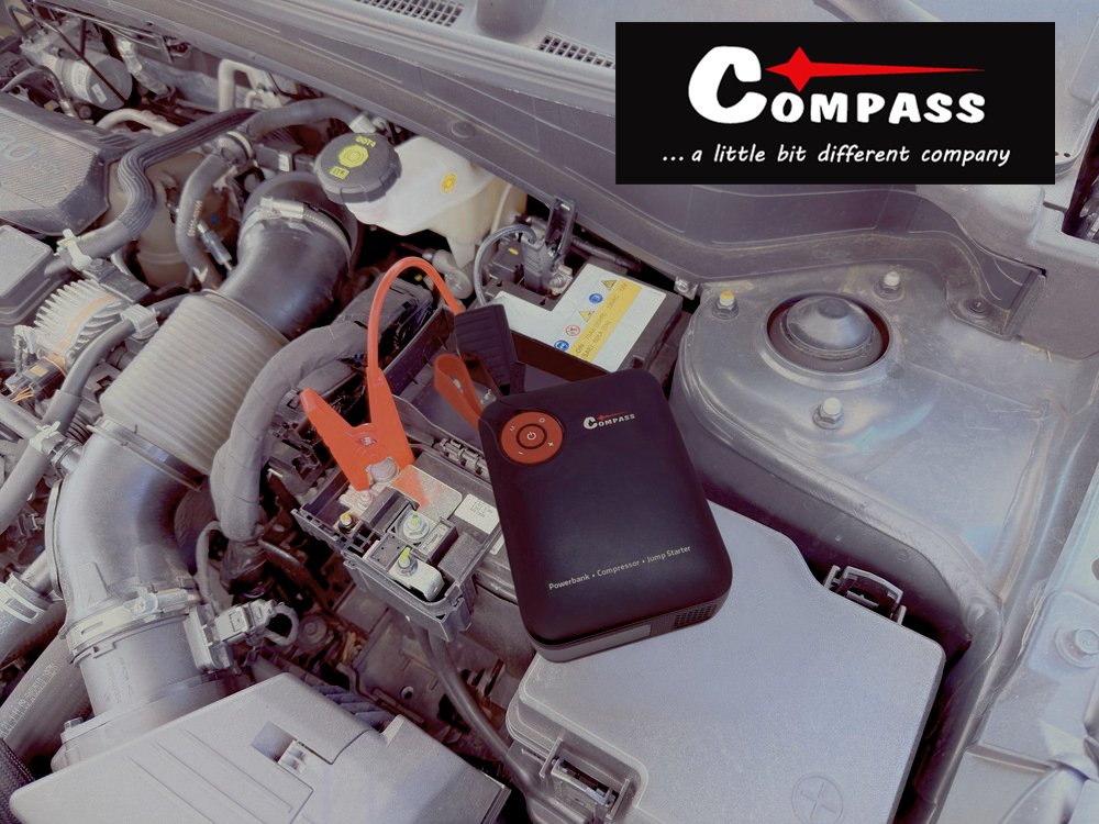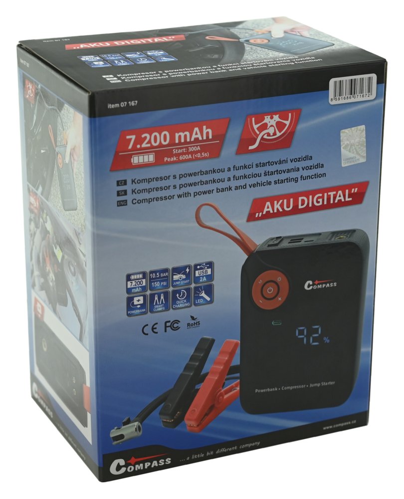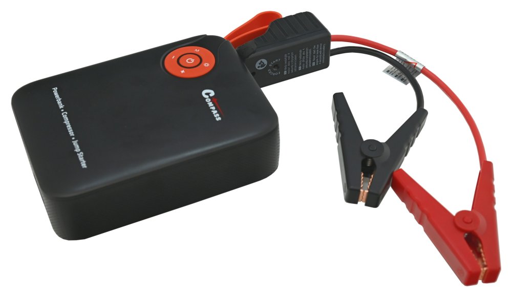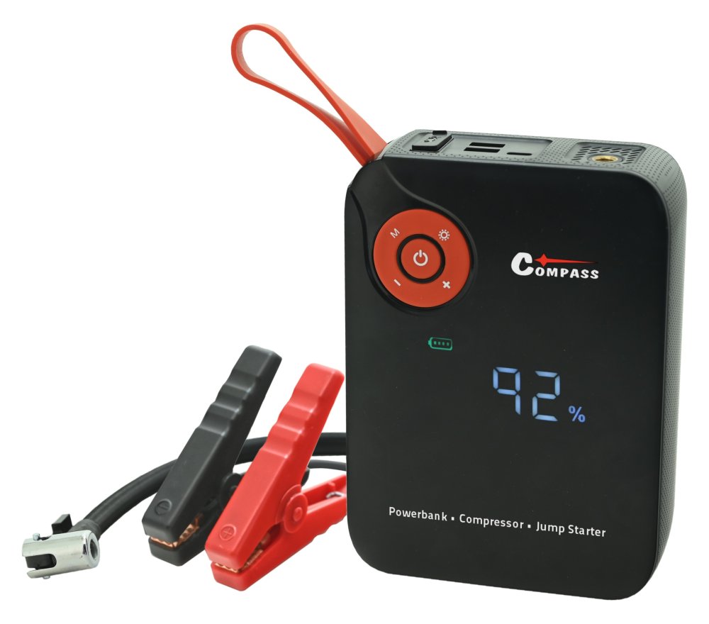 Kompresor s funkcí Autostop, s powerbankou o kapacitě 7.200mAh s rychlým nabíjením USB a funkcí nouzového startování vozidla pomocí Smart klipsů.