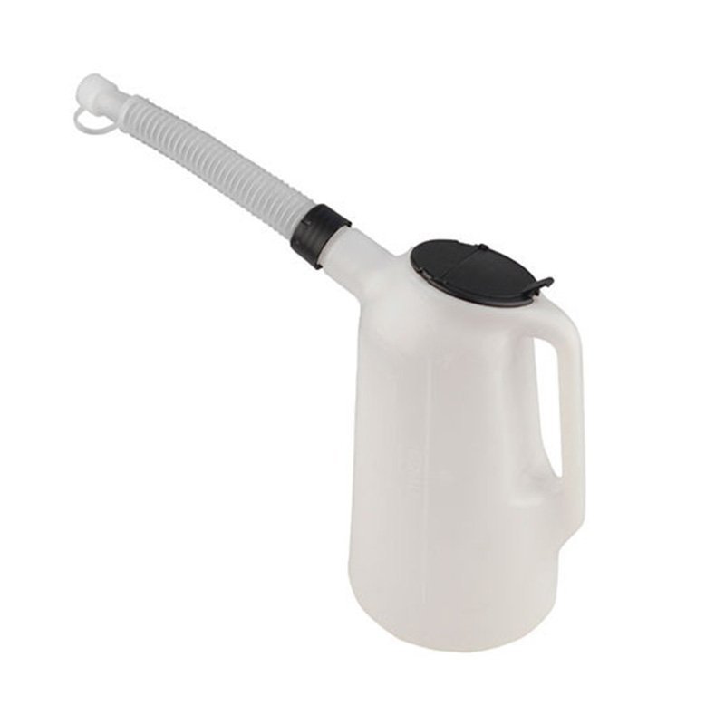 Plastová nádoba na olej a jiné kapaliny např. voda, kapalina do ostřikovačů, chladicí kapalina apod.. Konev má ohebnou, odšroubovatelnou výtokovou hubici, která je zakončená zátkou zabraňující rozlití kapaliny během manipulace s nádobou. Plnící otvor konve je opatřen ochranným víčkem, které brání znečištění obsahu nádoby. Na boku konve je vyznačena měrná stupnice v litrech (po 0,5 l) a U.S. quartech. Díky průhlednému materiálu máte přehled, kolik tekutiny je uvnitř.