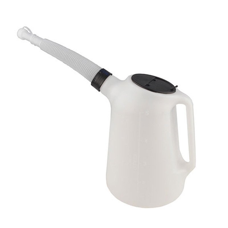 Plastová nádoba na olej a jiné kapaliny např. voda, kapalina do ostřikovačů, chladicí kapalina apod.. Konev má ohebnou, odšroubovatelnou výtokovou hubici, která je zakončená zátkou zabraňující rozlití kapaliny během manipulace s nádobou. Plnící otvor konve je opatřen ochranným víčkem, které brání znečištění obsahu nádoby. Na boku konve je vyznačena měrná stupnice v litrech a U.S. quartech. Díky průhlednému materiálu máte přehled, kolik tekutiny je uvnitř.