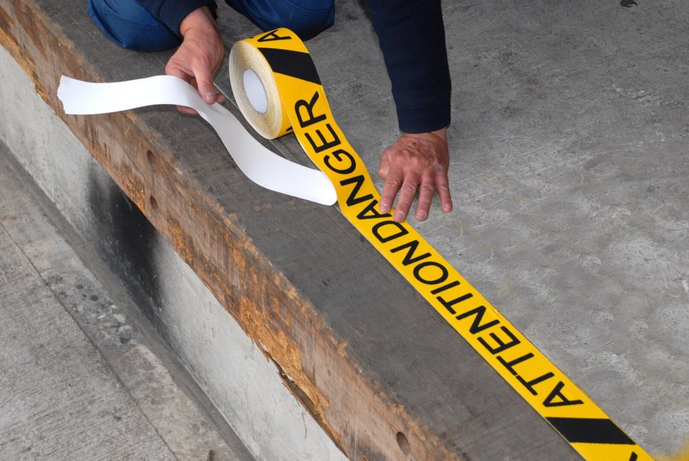 Bezpečnostní protiskluzová páska s vysoce kontrastním šikmým pruhováním se střídající se černou a žlutou barvou, ve středu pásky pak potiskem. Horní povrch pásky je potažen korundem. Páska je testována a převyšuje požadavky německých norem DIN, EU / Australian Pendulum a amerických norem ASTM. Protiskluzový povrch zajišťuje jistou úroveň přilnavosti v každé situaci, jelikož se neucpává špínou, prachem ani jinými nečistotami. Pásku lze nanést téměř na jakýkoli povrch v interiérech i exteriérech. Pokud je dodržen správný postup nanesení pásky na připravený povrch, bude mít páska dlouhou životnost, správnou tuhost i odolnost vůči vnějším podmínkám včetně styku s chemikáliemi.