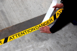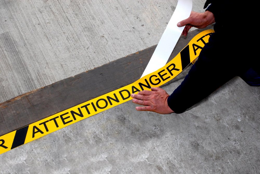 Nezařazeno » Černo-žlutá korundová protiskluzová páska s potiskem FLOMA Attention Danger - 18,3 m x 7,5 cm a tloušťka 0,7 mm