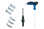 nastavitelná vykružovací korunka do dřeva, OSB desek, sádrokartonu, lamina, plastů apod. pilové stavitelné plátky z HSS oceli, robustní unašeč se šestihranou stopkou pomocí inbus klíče nastavte požadovaný průměr pro vykroužení - dle stupnice na unašeči dbejta na to, aby všechny břity byly nastaveny na stejném průměru!, při práci používejte ochranné pomůcky ! PEVNĚ UTÁHNĚTE KORUNKU NA UNAŠEČ, ABY NEDOŠLO K JEJÍMU SAMOVOLNÉMU POVOLENÍ PŘI ZASTAVENÍ AKUVRTAČKY NEBO VRTAČKY ! Instruktážní video