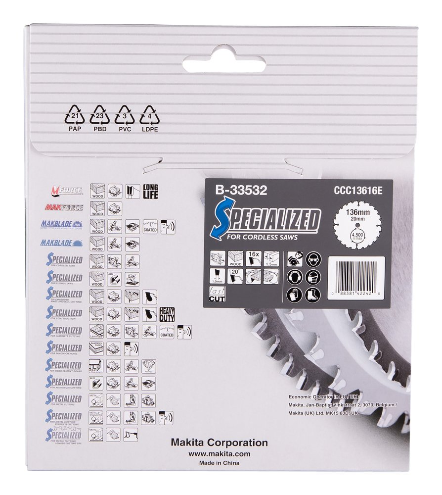 • kotouč pilový dřevo SPECIALIZED 136x1.5x20mm 16Z pro aku pily = old B-10643