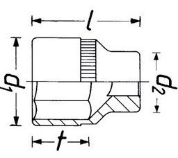 Délka 25mm. Velikost 36mm. Rozměr čtyřhranu 1/2".