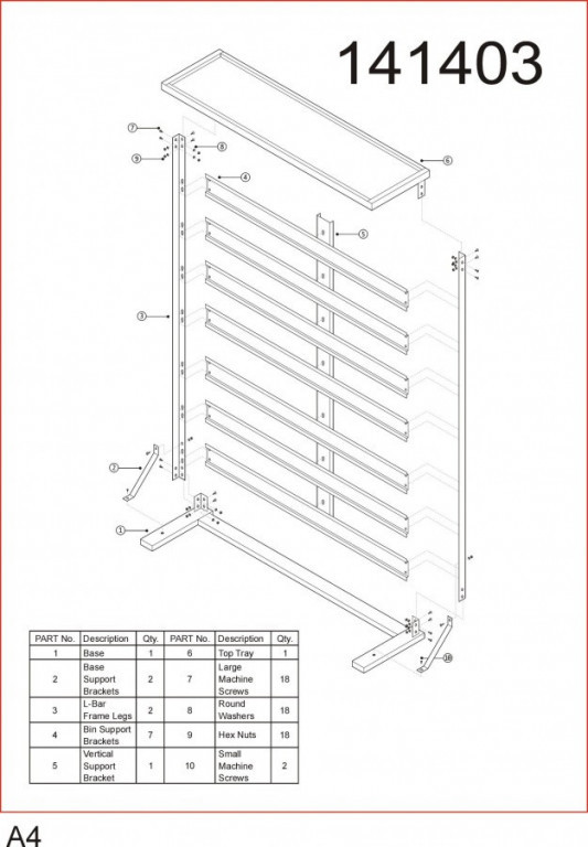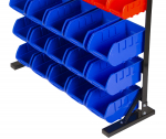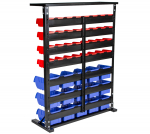 Kovový rám regálu s 47 plastovými boxy pro dokonalou organizaci v dílně. Plastové úložné boxy jsou z odolného plastu pro snadné vkládání a odebírání obsahu a jejich ukládání je velmi variabilní. Zásobníky jsou snadno odjímatelné od rámu (závěsné lišty).
