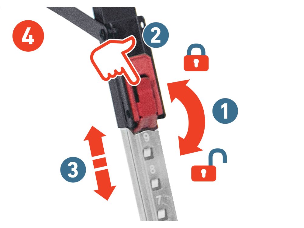 obě nožky lze sklopit a zafixovat do těla kozy a díky praktickému hornímu plastovému madlu je tak koza lépe přenositelná rozloženou kozu je možno výškově nastavit od 60 do 85cm a to v devíti přednastavených krocích (1 krok=cca 3,3cm) na každý z konců je možno umístit boční úchyt s fixní šířkou 45mm k případnému uchycení trámkových dřevěných profilů a následnému rozšíření pracovní plochy mezi dvě kozy.