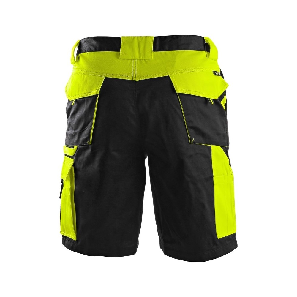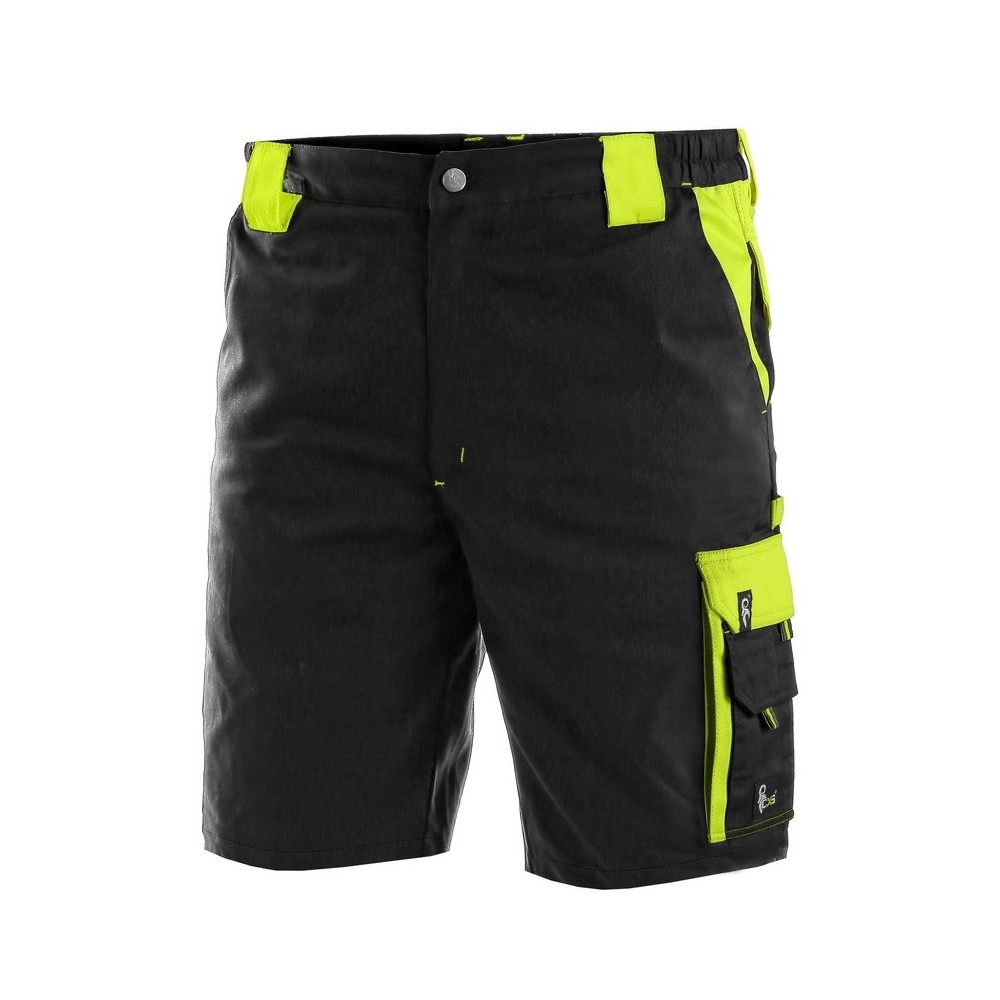 Pánské montérkové kraťasy, pas s poutky na opasek a gumou v bocích, přední klínové kapsy, multifunkční kapsy na obou stranách, dvě zadní kapsy s klopami, reflexní doplňky.