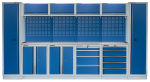 Sestava 21 ks dílenského nábytku PROFI BLUE s nerezovou pracovní deskou