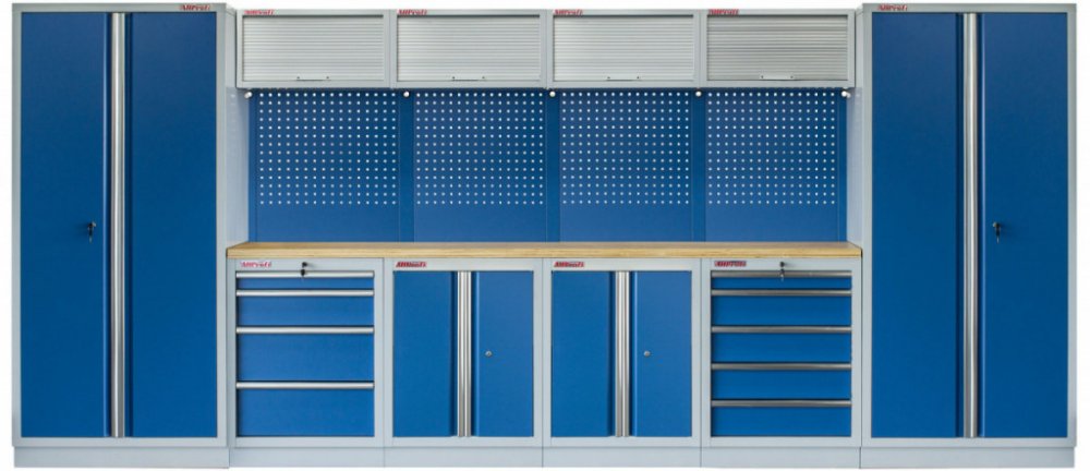 Sestava nábytku v sobě skrývá dostatečné množství úložného prostoru pro vaše nářadí, autotechniku i dílenské vybavení. V kombinaci s bytelnou pracovní deskou získáte multifunkční stěnu, se kterou vám půjde práce od ruky ve všech směrech.