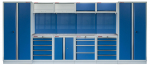 Sestava 21 ks dílenského nábytku PROFI BLUE s nerezovou pracovní deskou