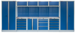 Sestava 21 ks dílenského nábytku PROFI BLUE s nerezovou pracovní deskou
