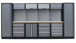 Sestava nábytku v sobě skrývá dostatečné množství úložného prostoru pro vaše nářadí, autotechniku i dílenské vybavení. V kombinaci s bytelnou pracovní deskou získáte multifunkční stěnu, se kterou vám půjde práce od ruky ve všech směrech.