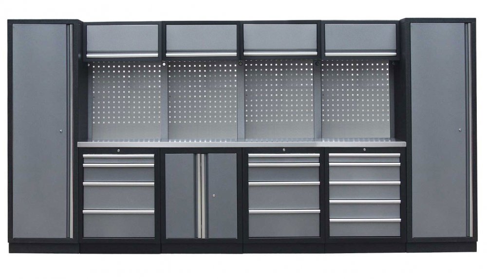 Sestava 21 ks dílenského nábytku PROFI GREY s nerezovou pracovní deskou
