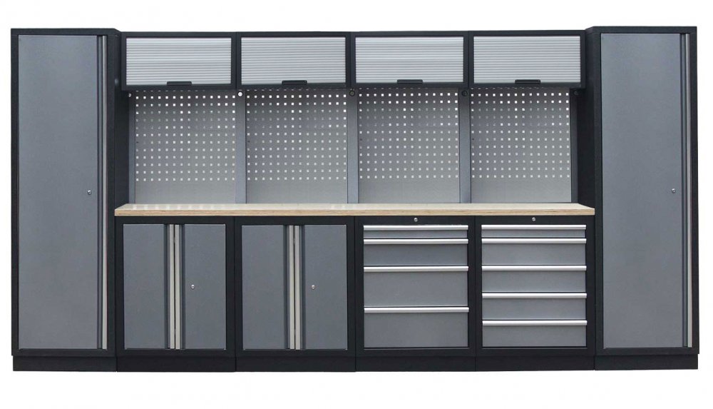 Sestava nábytku v sobě skrývá dostatečné množství úložného prostoru pro vaše nářadí, autotechniku i dílenské vybavení. V kombinaci s bytelnou pracovní deskou získáte multifunkční stěnu, se kterou vám půjde práce od ruky ve všech směrech.