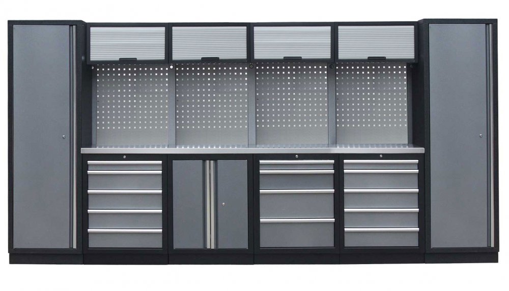Sestava nábytku v sobě skrývá dostatečné množství úložného prostoru pro vaše nářadí, autotechniku i dílenské vybavení. V kombinaci s bytelnou pracovní deskou získáte multifunkční stěnu, se kterou vám půjde práce od ruky ve všech směrech.