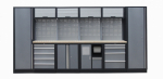 Sestava 21 ks dílenského nábytku PROFI GREY s dřevěnou pracovní deskou