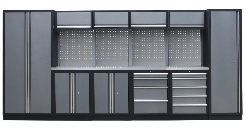 Sestava 21 ks dílenského nábytku PROFI GREY s nerezovou pracovní deskou