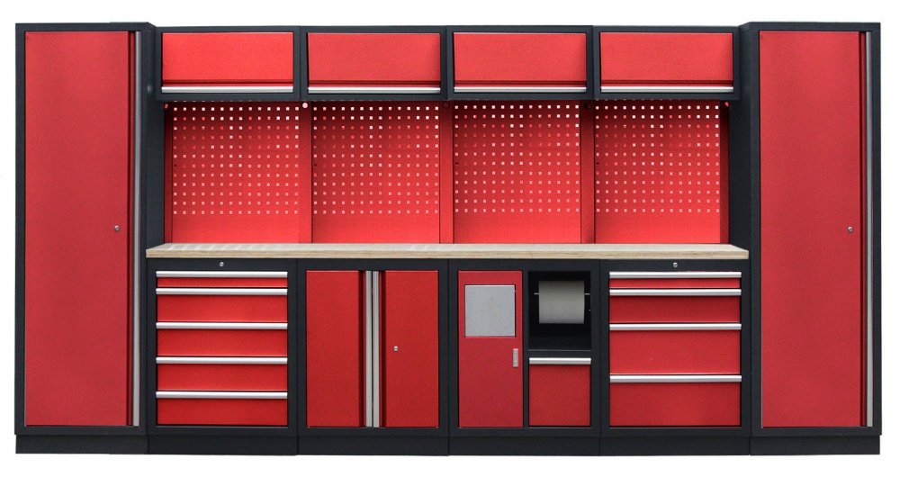 Dílenský nábytek PROFI RED je plně modulární. Každá skříňka je navržena s ohledem na maximální flexibilitu. Jednotlivé komponenty zaměníte a umístíte podle vašich potřeb. Bez problému tak přidáte další skříňky na jakoukoliv pozici nebo sestavu můžete rozšířit o regály, ponk, dílenské vozíky s nářadím i prázdné nebo multifunkční skříňky.