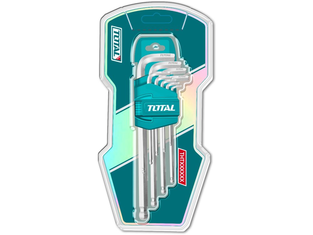 9dílná sada šestihranných klíčů s kuličkovým hrotem, Materiál: Cr-VVelikost: 1,5 mm, 2 mm, 2,5 mm, 3 mm, 4 mm, 5 mm, 6 mm, 8 mm, 10 mm.Tepelně zpracováno a pochromováno.