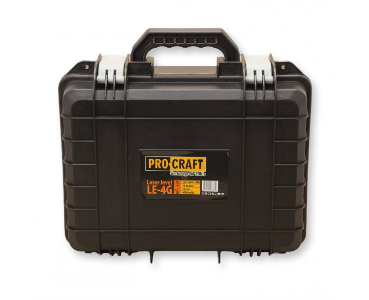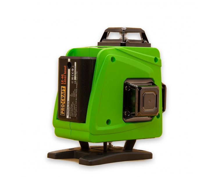 Procraft LE-4G promítá jasné zelené horizontální a vertikální linie s viditelností 360°, což umožňuje měření v celém prostoru bez nutnosti neustálého přestavování přístroje. Zelený paprsek má až čtyřnásobně vyšší viditelnost než červený, a proto je vhodný i do světlejších místností nebo při denním světle.