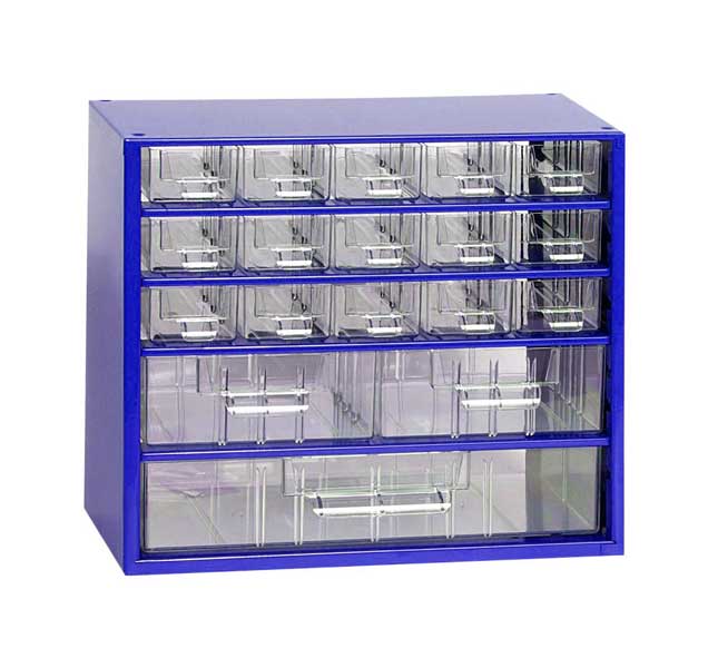 Kvalitní a odolné skříňky Mars, které nesmí chybět ani ve Vaší dílně, jsou vyrobeny z ocelového plechu a opatřeny odolným práškovým lakem. Čiré zásuvky a přepážky jsou vyrobené z trvanlivého materiálu PS(polystyrol).