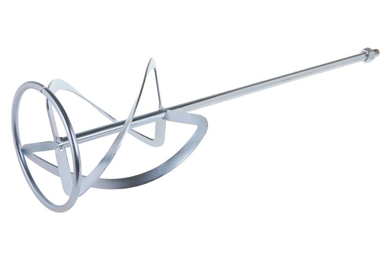 Míchadlo - levotočivé (míchací účinek shora tlačí směs dolů) - metla, pozinkované, rozměr : 160 x 600 mm - M14, použití : pro těžké materiály s vysokou viskozitou. Malty, betony, cementové a vápenné omítky, spojovací hmoty, mazaniny, epoxidové pryskyřice, živičné vrstvy.
