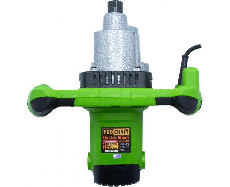 Elektrické míchadlo Procraft PMM2600 je určeno k míchání betonu, malty, lepidla, omítky, sádry. Dvourychlostní převodovka umožňuje nastavení optimálních rychlosti při míchání stavebních hmot. První pro viskózní a tuhé materiály, druhý pro řidší materiály. Silný motor s výkonem 1600 W a vysokých otáček až 900 zaručuje dlouhou bezporuchovou práci. Součástí dodávky jsou uhlíkové kartáče a maticový klíč. Balení karton.