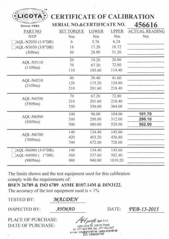 Tento klíč je navržen pro přesné utahování, a díky certifikátu o kalibraci je zajištěna jeho vysoká spolehlivost a přesnost.
