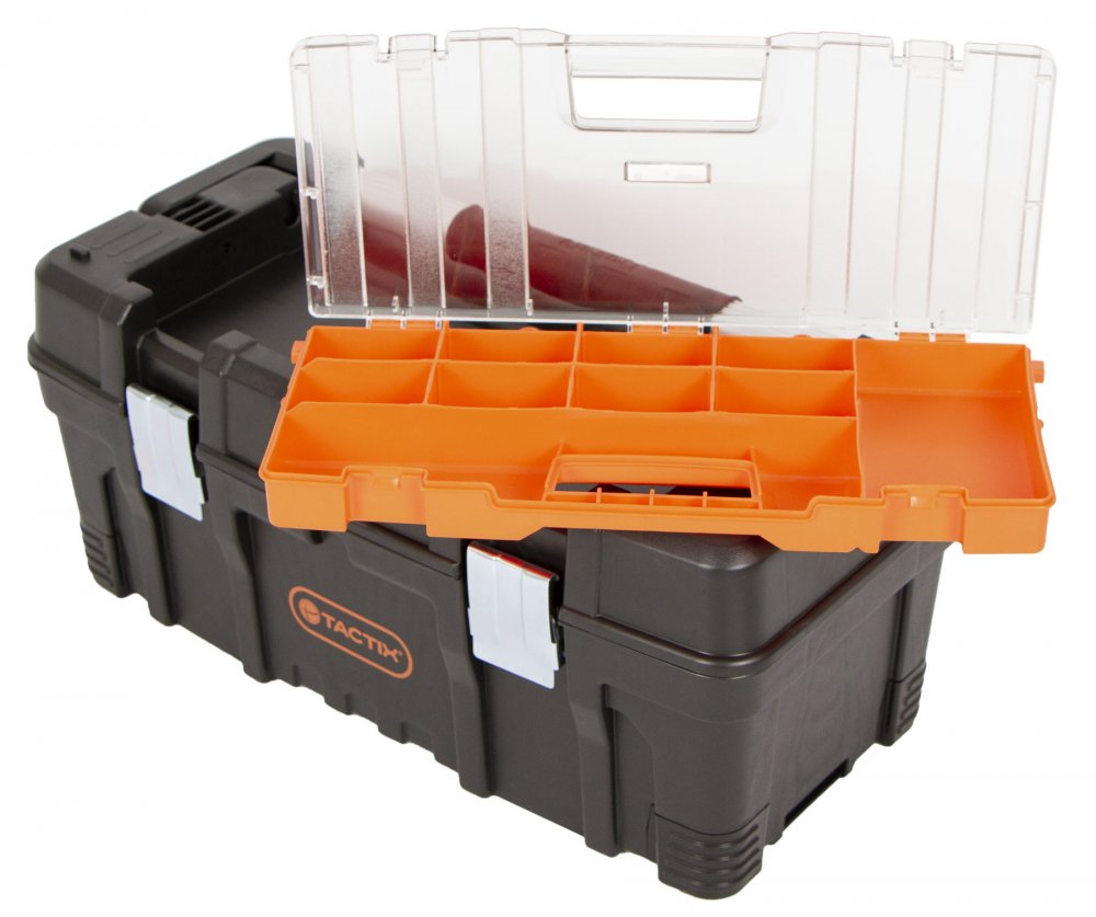 Vrchní box je odnímatelný pomocí bočních západek a vybaven organizérem na drobnější materiál (šrouby apod.), vrchní box lze lehce vyjmout.