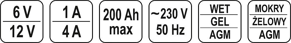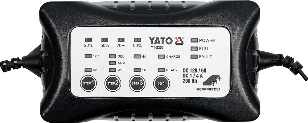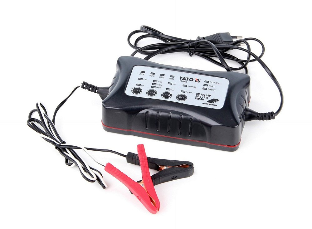Elektronická nabíječka akumulátorů s napájením 230V, určená pro 6 a 12V akumulátory o kapacitě 0-200 Ah.