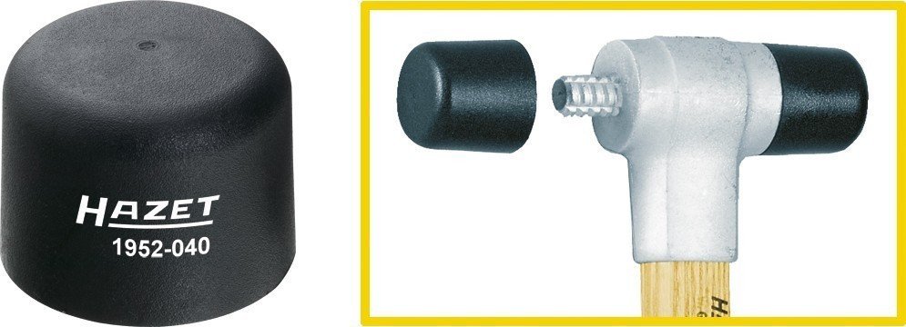 Z mimořádně tuhého materiálu Desmopan®Opotřebované hlavy odstraníte silným otočením doleva.Nové hlavy narazíte bez otáčení rázem nebo tlakemVyrobeno v NěmeckuNáhradní hlavy (pár) pro 1952-28