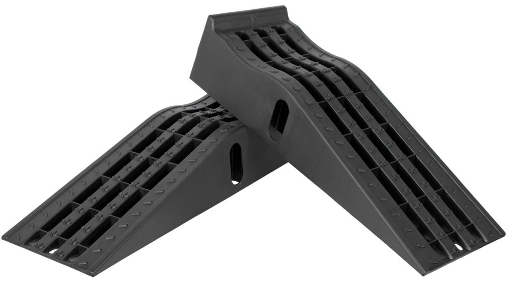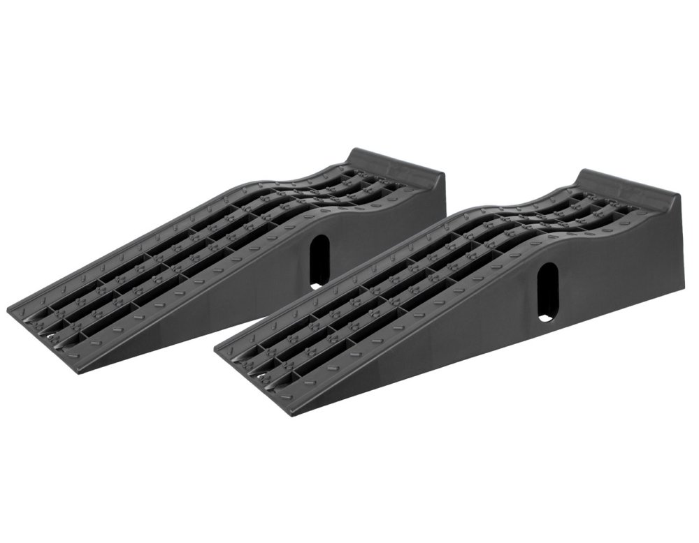 Vysoce stabilní plastové rampy pro bezpečné vyvýšení automobilu. Usnadňují přístup k podvozku při opravách a údržbě.