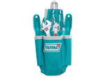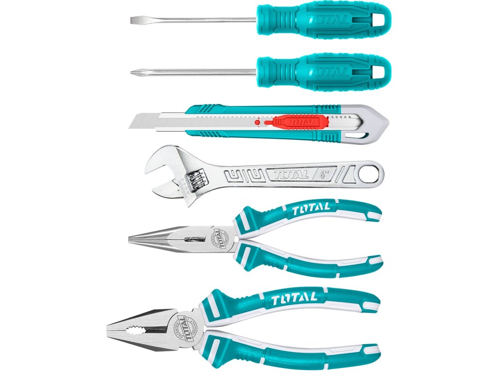 Tato populární sada nářadí kombinuje základní nářadí a úložný prostor pro něj. Sada obsahuje pás na nářadí, 1 ks PH1x100mm, 1ks SL5.5 *100mm, 1ks kleště kombinované 180mm, 1ks kleště půlkulaté přímé 160mm, 1ks klíč nastavitelný 160cm, 1ks nůž ulamovací.