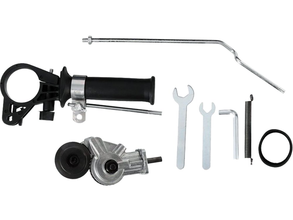 v sadě je dodáváno příslušenství pro upnutí jak k akumulátorovým (doporučeno) tak i kabelem ze sítě 230V napájeným vrtačkám (alternativně) max. tloušťka řezaného plechu je: pro ocel do 0,8mm, pro měď hliník a ostatní měkké kovy do 1,2mm