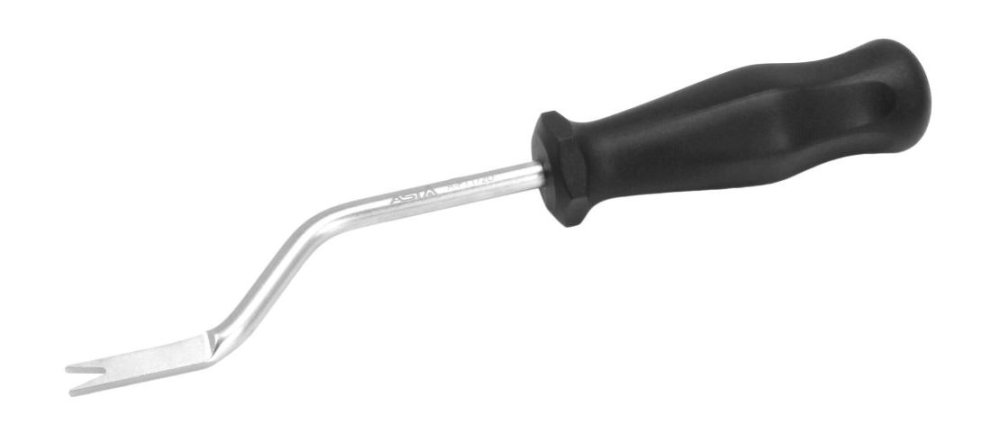 Zahnutý nástroj pro demontáž příchytek čalounění a rukojetí v interiéru vozidel skupiny VAG.