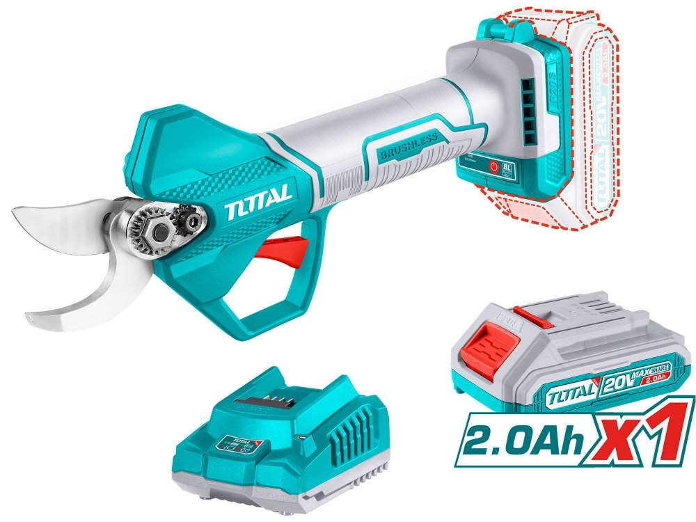 Nůžky zahradnické AKU, Brushless, 20V Li-ion, 2000mAh, industrial, 1ks baterie a nabíječky