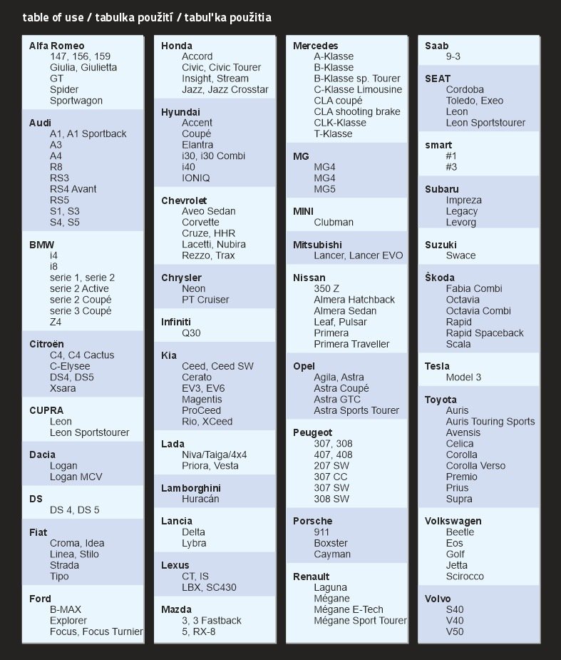 Škoda | Fabia Combi, Octavia, Octavia Combi, Rapid, Rapid Spaceback, Scala |