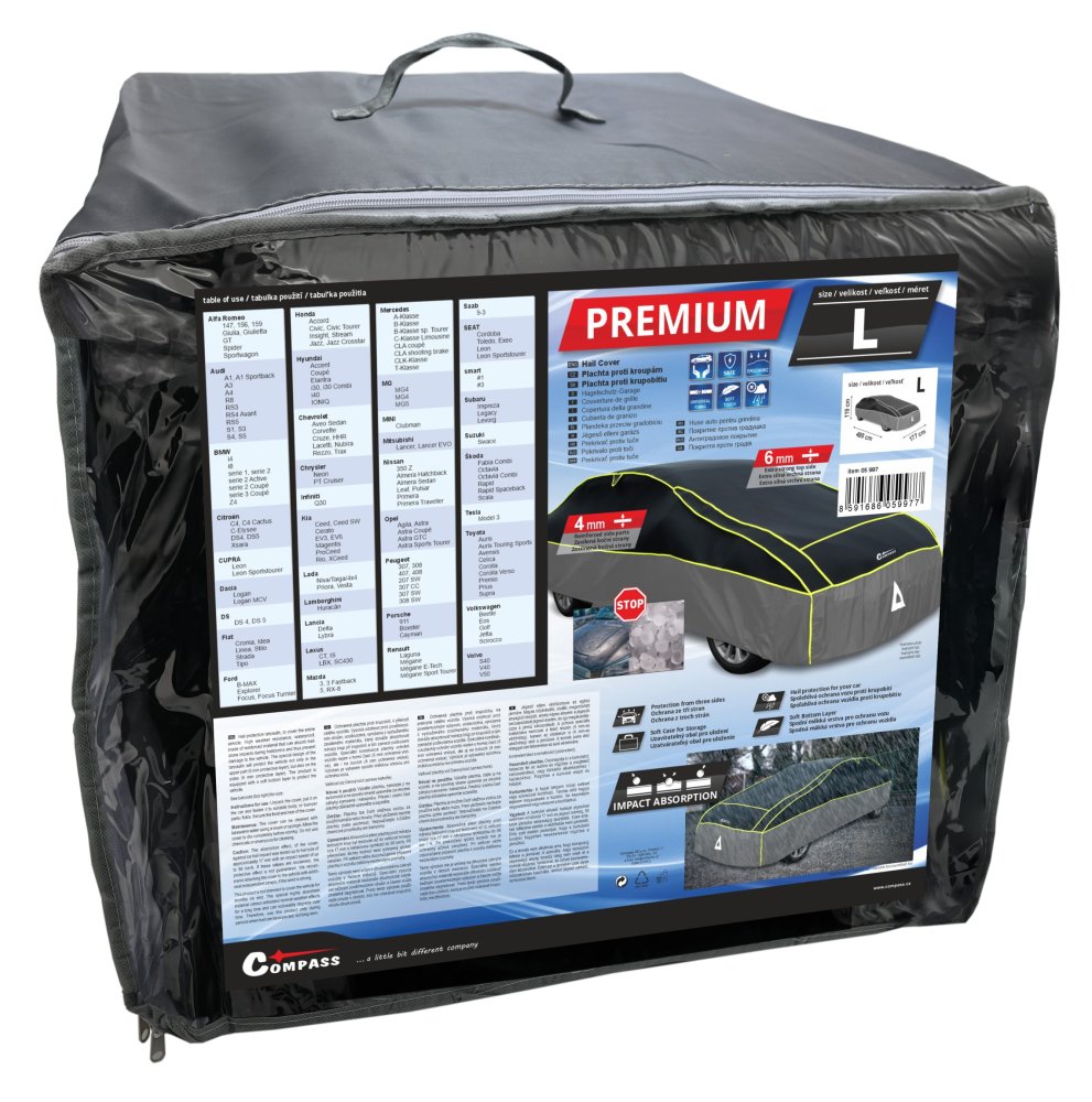 Oproti jiným plachtám jsou plachty Premium opatřeny čtyřmilimetrovým polstrováním rovněž na bocích, takže chrání vozidlo prakticky ze všech stran. Vnitřní povrch je navíc doplněn měkkou podšívkou, která chrání karoserii před vznikem škrábanců.