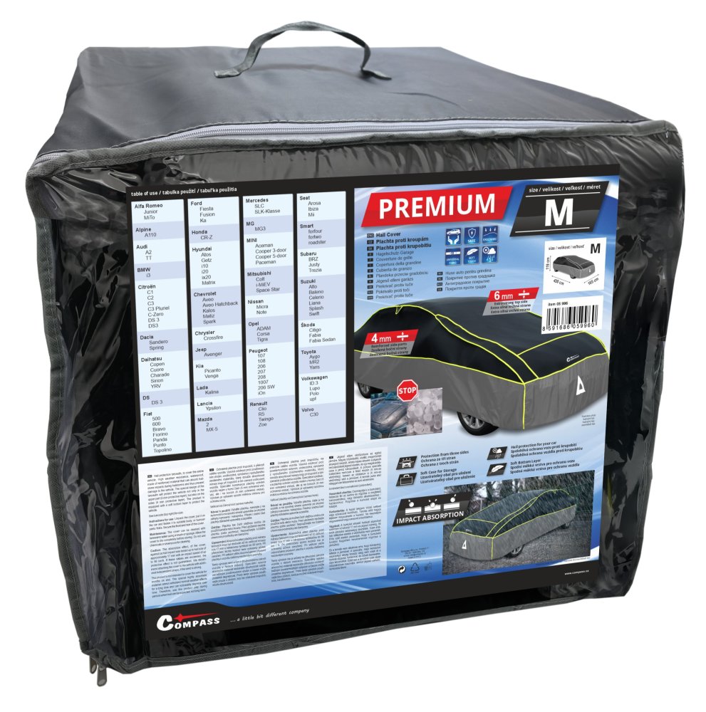 Oproti jiným plachtám jsou plachty Premium opatřeny čtyřmilimetrovým polstrováním rovněž na bocích, takže chrání vozidlo prakticky ze všech stran. Vnitřní povrch je navíc doplněn měkkou podšívkou, která chrání karoserii před vznikem škrábanců.