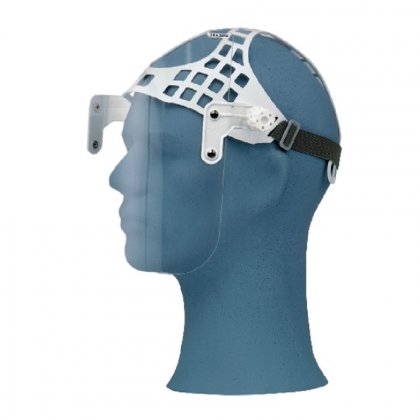Ochranný štít poskytující ochranu před postřikem kapalinou a mechanickými částicemi.